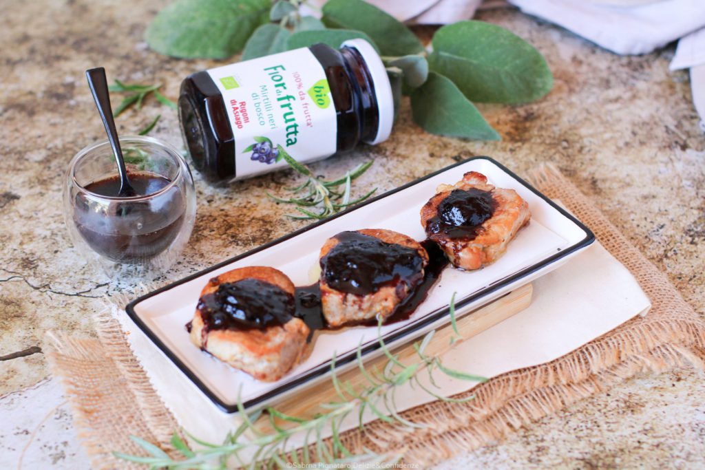Il filetto di maiale con salsa di Fiordifrutta mirtilli neri di bosco è un secondo piatto raffinato, dal gusto agrodolce, perfetto per rendere speciale qualsiasi occasione.