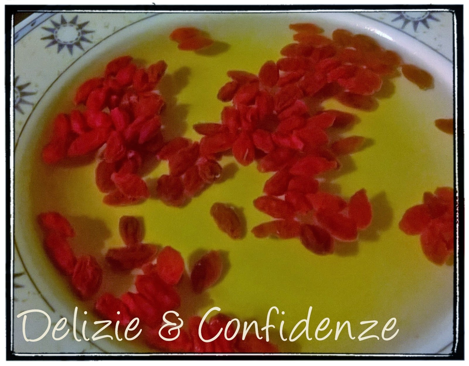 bacche di goji precedentemente lasciate in ammollo in acqua tiepida e strizzate.
