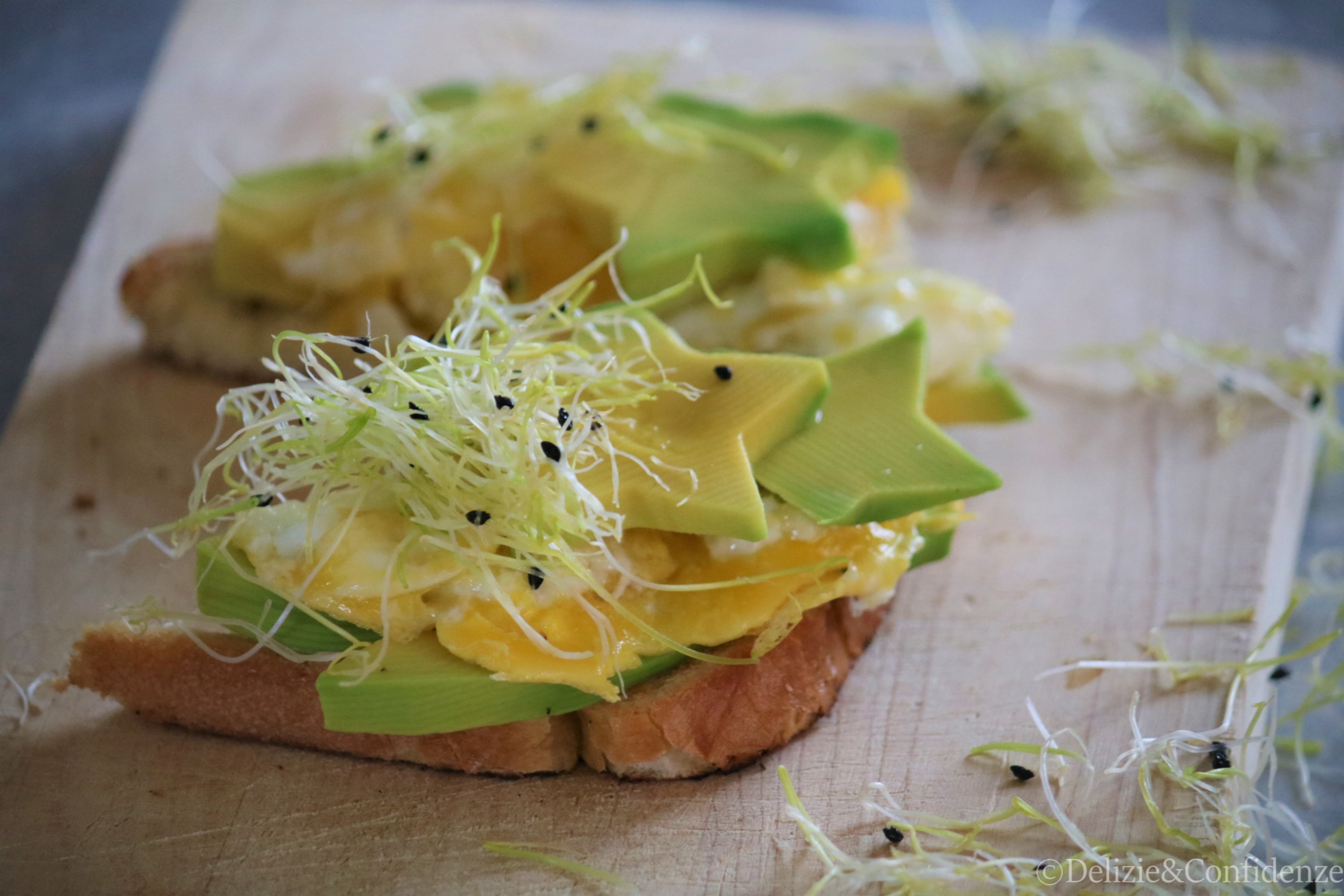 Avocado toast con germogli di cipolla