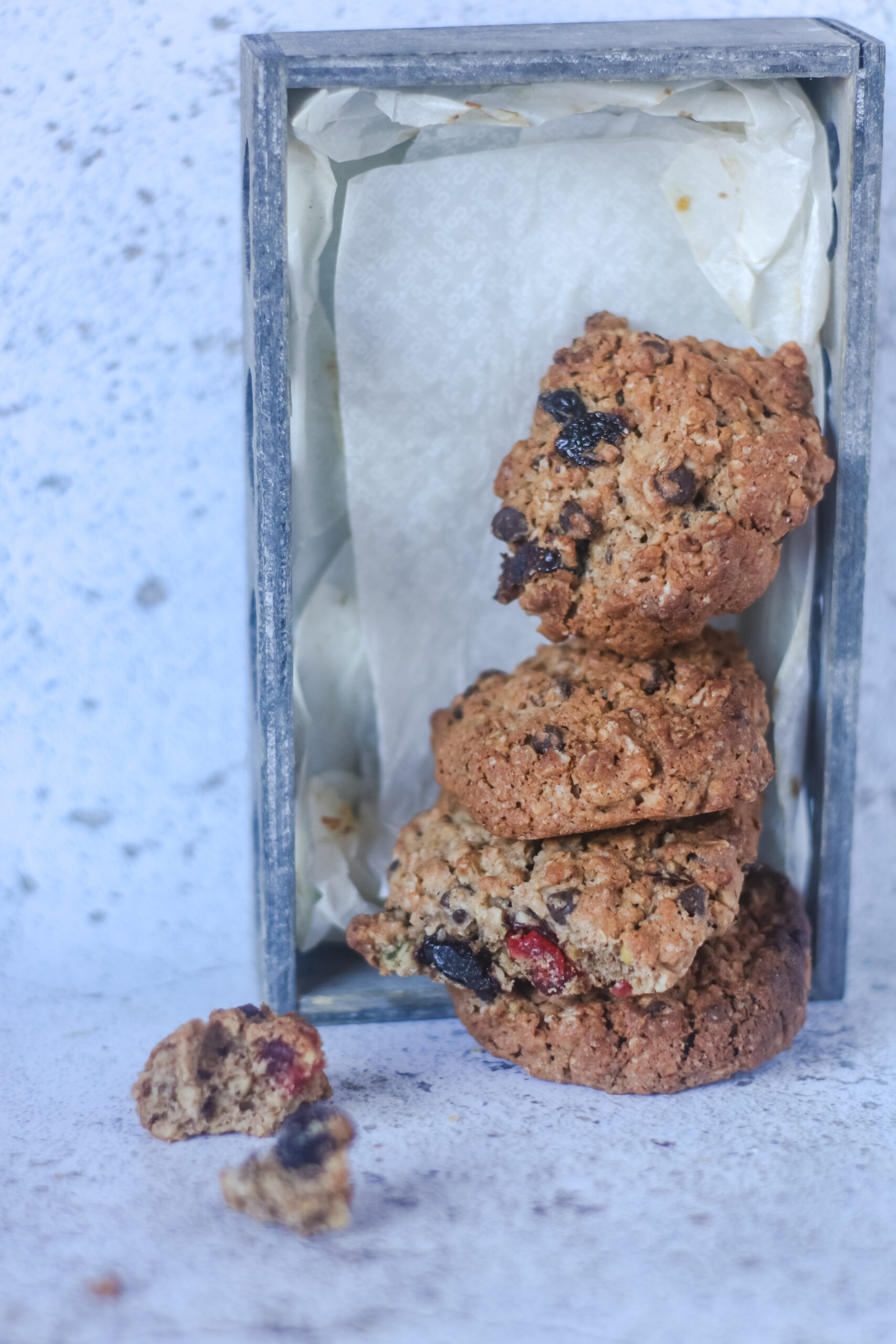 Biscotti energetici integrali ai cereali, semi, frutta secca e cioccolato fondente sono lo snack perfetto per chi ama unire gusto e benessere.