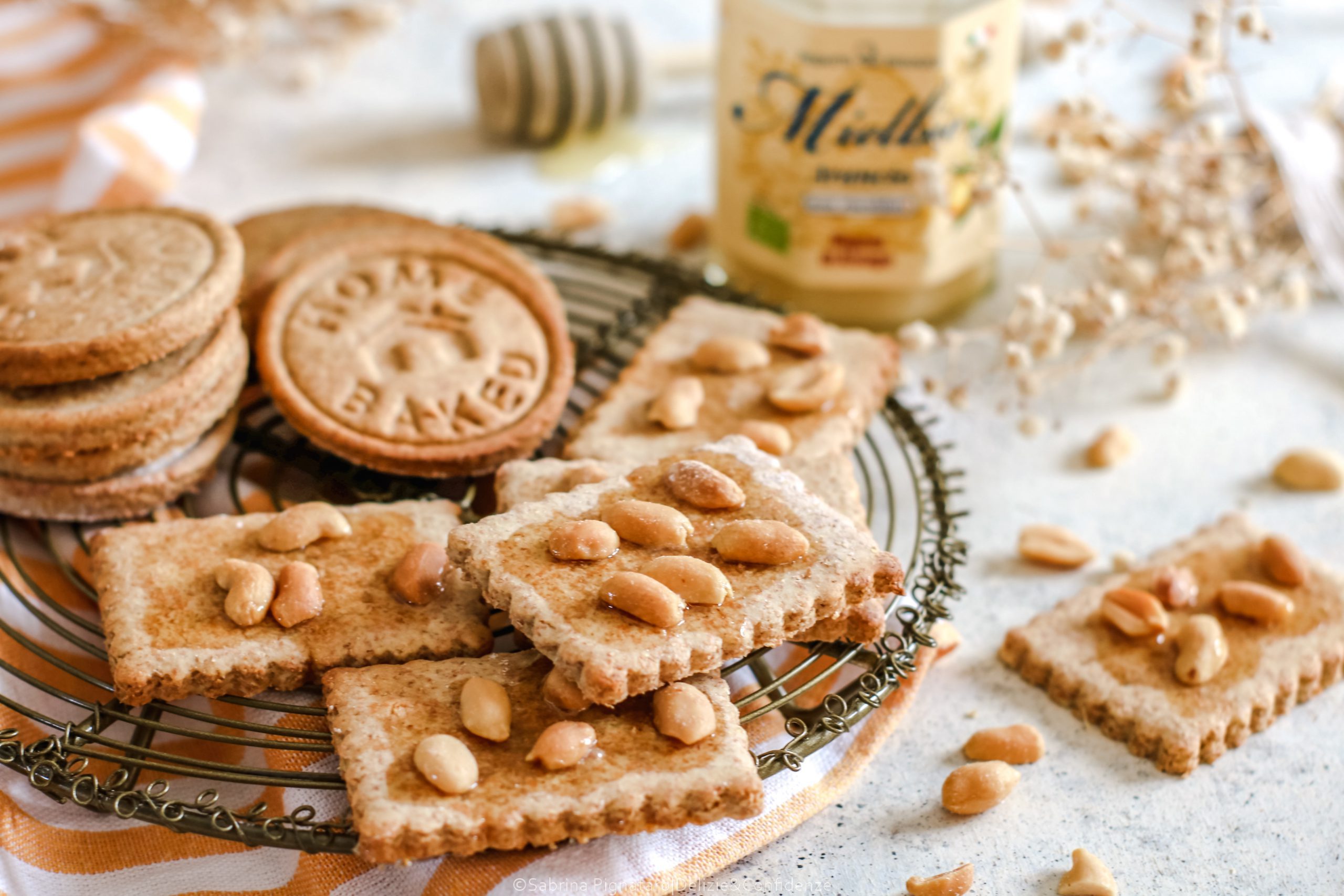 Frollini al miele senza lievito nè latticini, con farina integrale e arachidi salate.