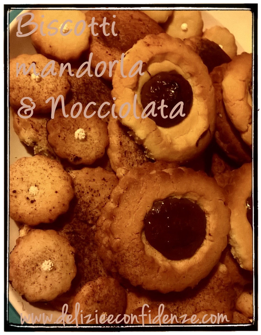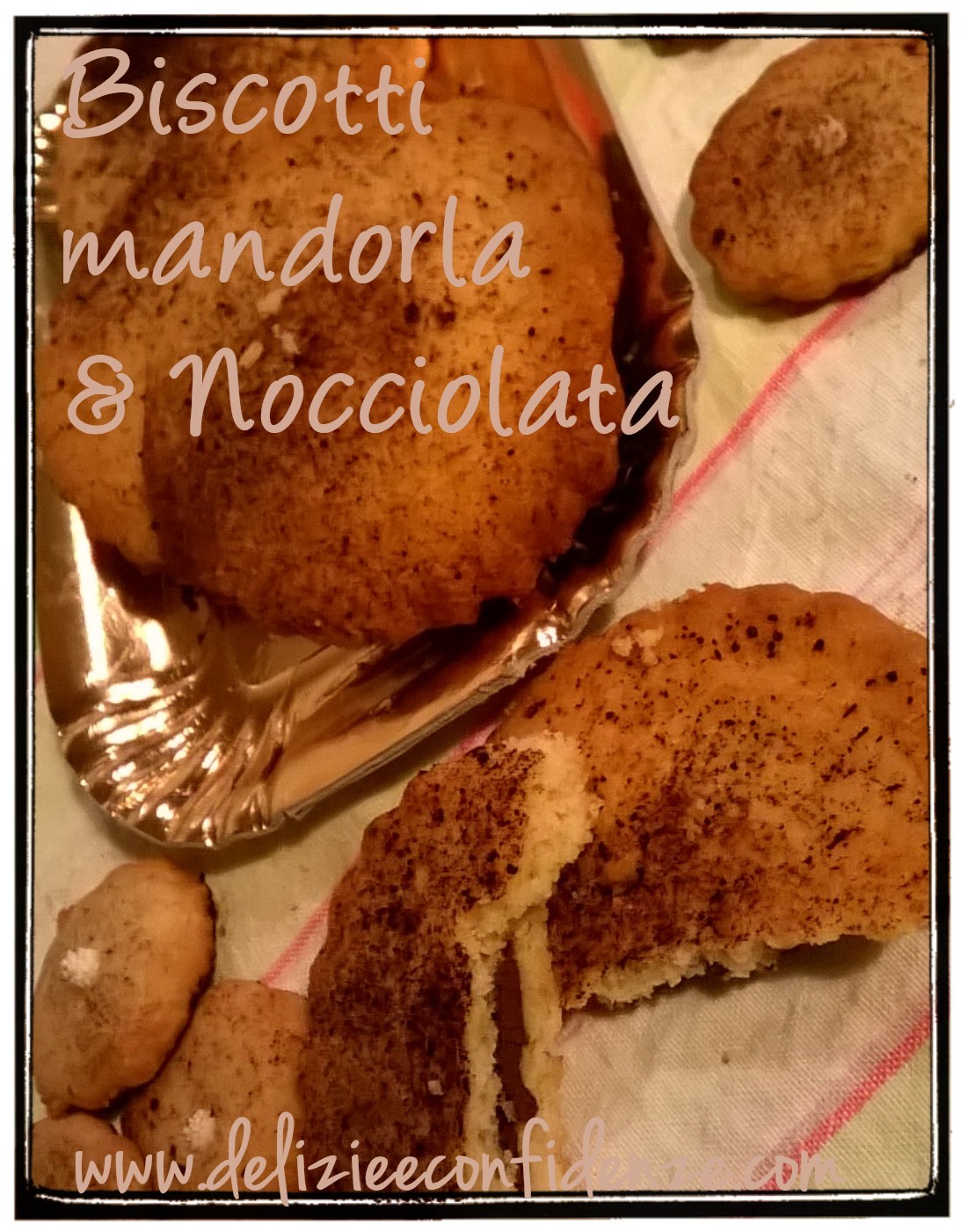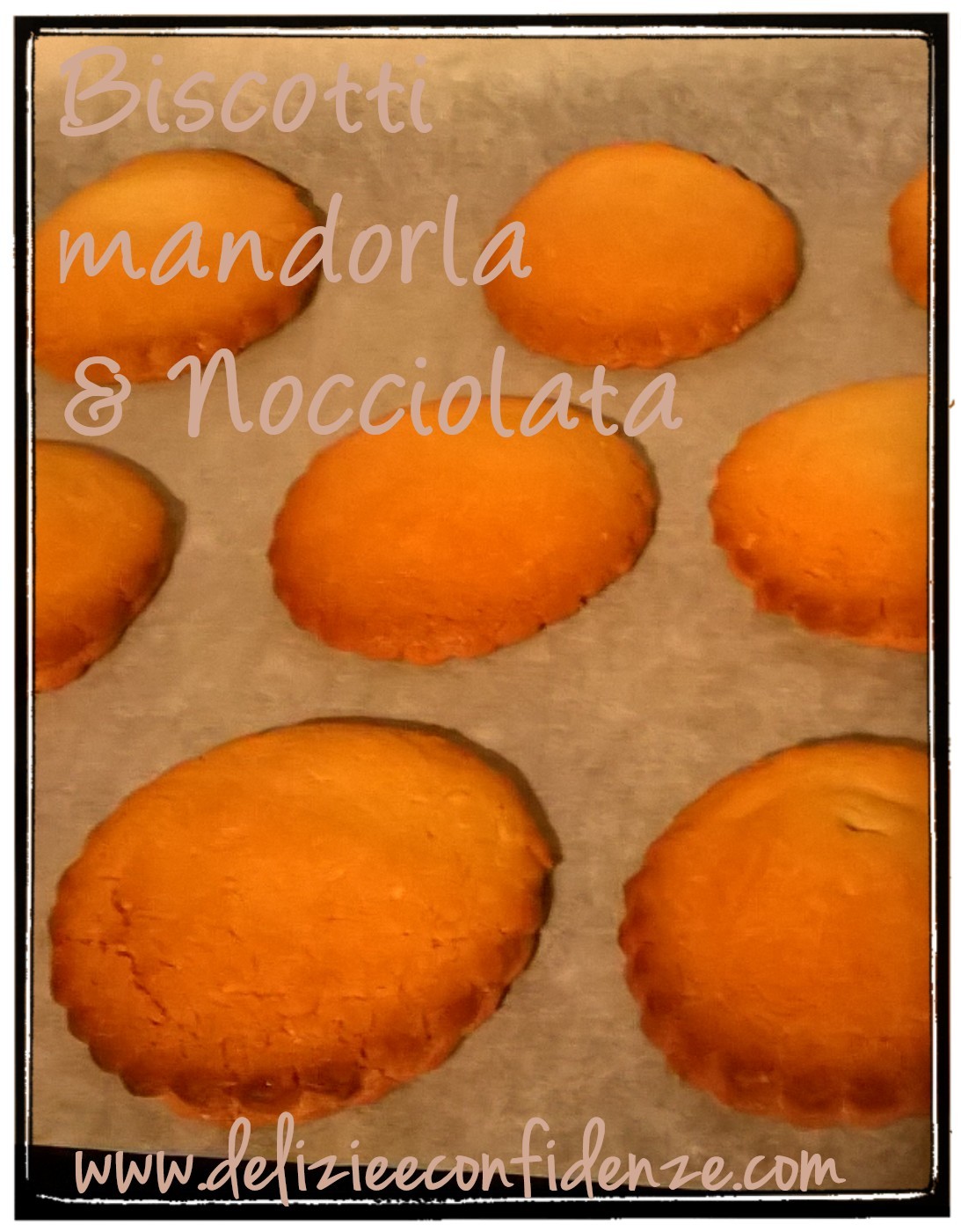 ecco dei biscotti di frolla alla mandorla con un cuore cremoso alla nocciola…..