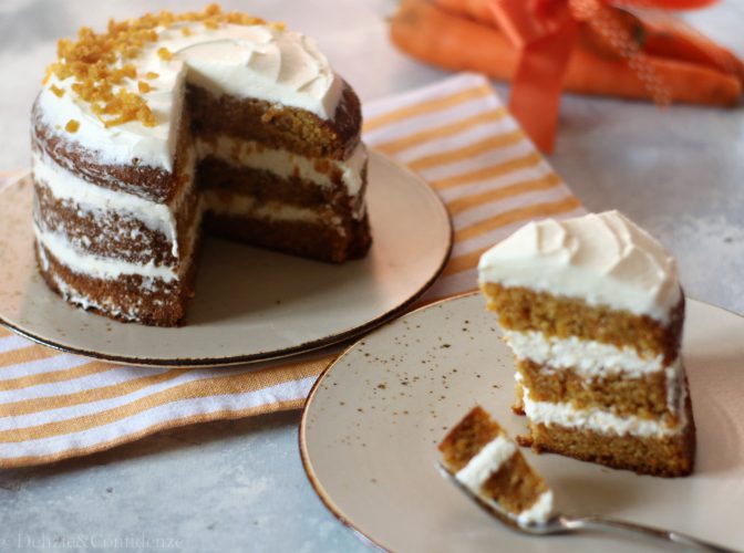 La Carrot Cake è la torta americana, alta e sofficissima, deliziosa con il suo frosting, in questa rivisitazione senza latte e derivati.