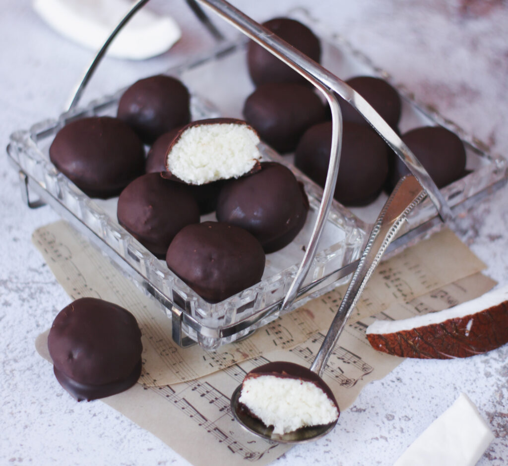 Preparare questi cioccolatini al cocco è diventato per me un piccolo rituale, soprattutto nei momenti in cui sento il bisogno di rallentare e concedermi qualcosa di semplice ma speciale. Mi piace farli nel silenzio della cucina, con una musica di sottofondo e l’aroma del cioccolato che si diffonde nell’aria. Spesso li preparo per regalarli, avvolti in carta dorata o messi in piccole scatole fatte a mano: è il mio modo di dire “ti ho pensato”.