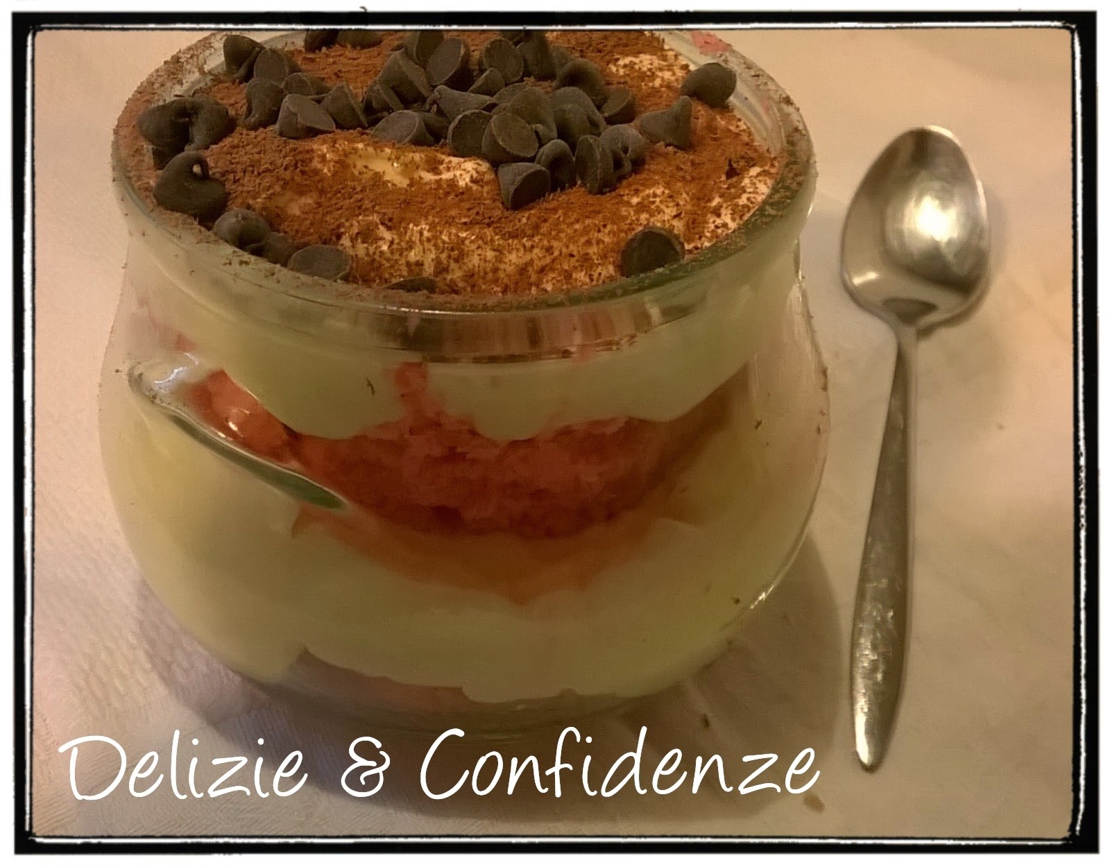decorare l’ultimo strato di crema ricoprendolo con del cacao in polvere e gocce di cioccolato fondente.