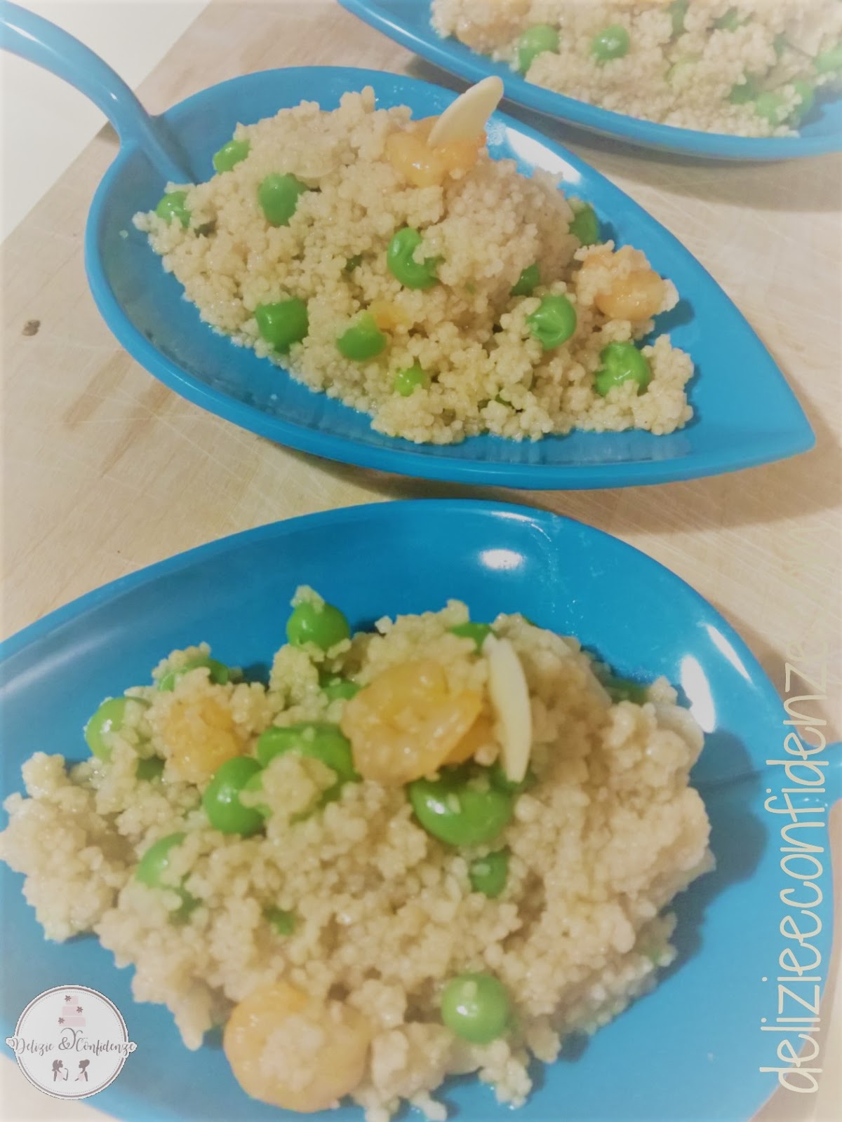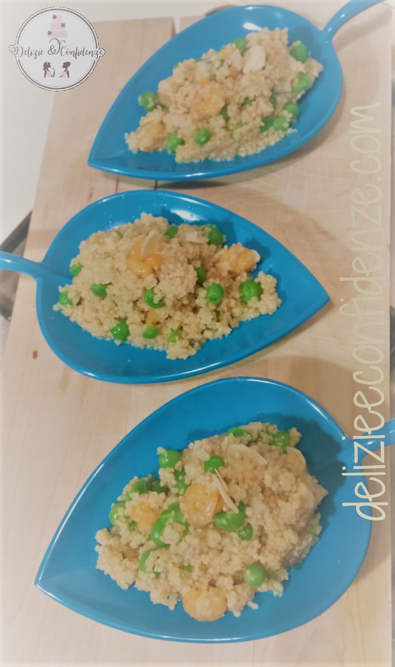 Adoro il couscous e sono solita prepararlo soprattutto in Estate,in versione fredda..la tua ricetta mi piace e ispira tantissimo in quanto sicuramente gustosissima,l'abbinamento gamberetti,mandorle e piselli e' da provare assolutamente;).