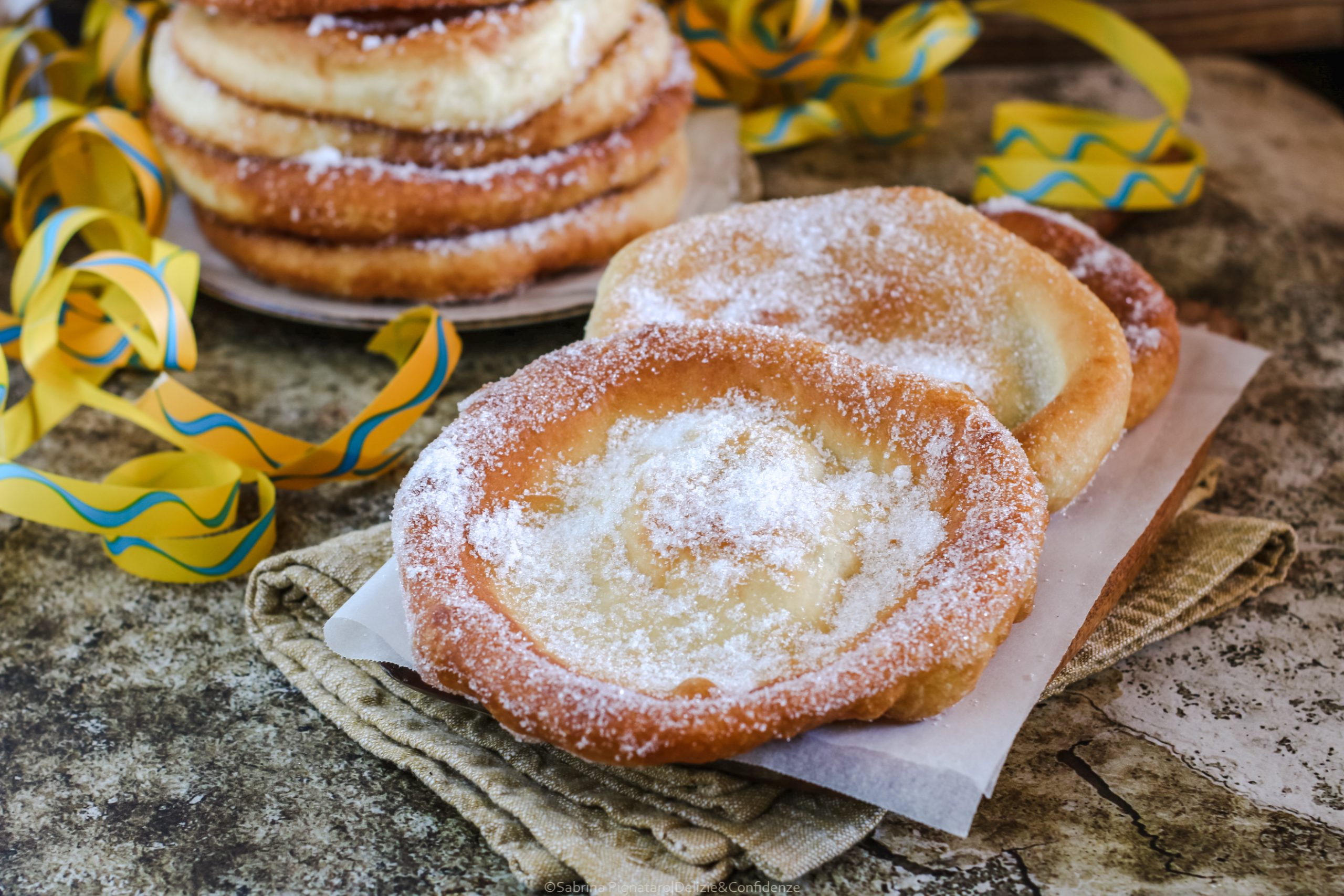 Frittelle del luna park: dolci di pasta lievitata fritti e ricoperti di zuccho, dalla tipica forma schiacciata, croccanti fuori e morbidi all’interno.