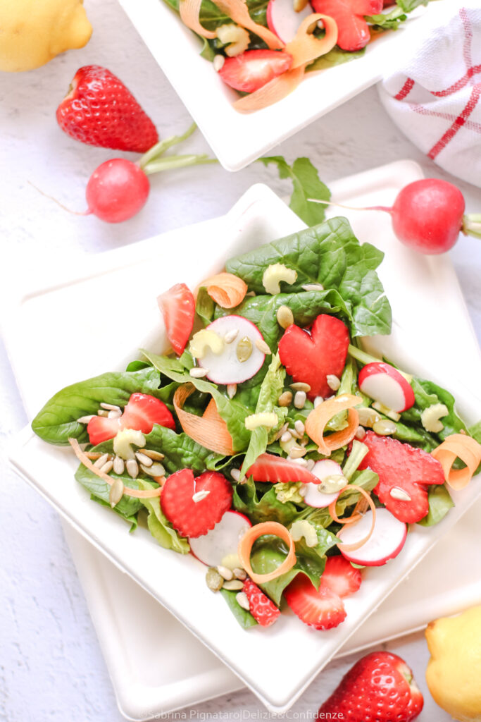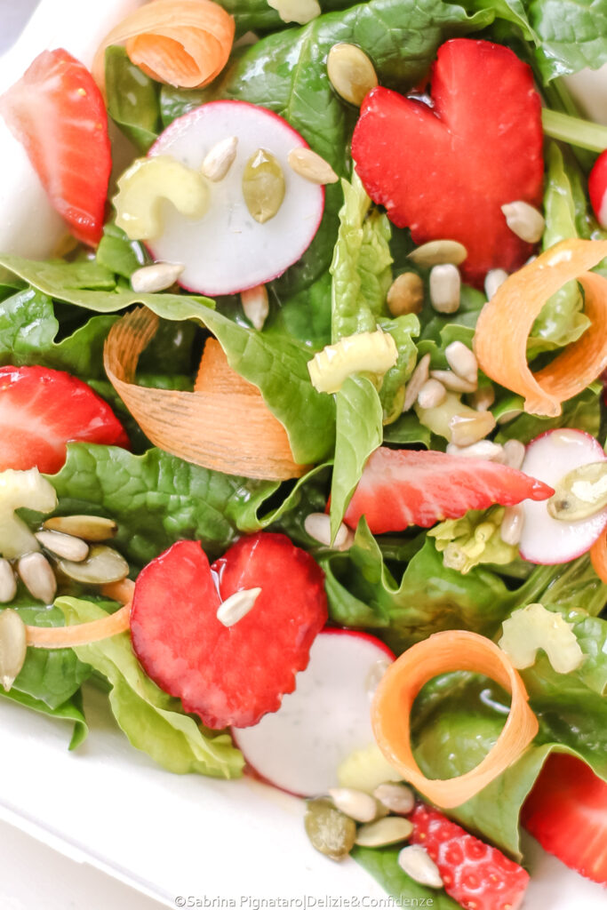 Con l’arrivo della primavera cresce la voglia di portare in tavola piatti freschi, leggeri e colorati. Questa insalata di fragole e spinaci, arricchita con ravanelli croccanti, carote e semi di girasole, è l’esempio perfetto di come sia possibile unire semplicità, stagionalità e nutrizione, creando un piatto equilibrato e ricco di benefici.