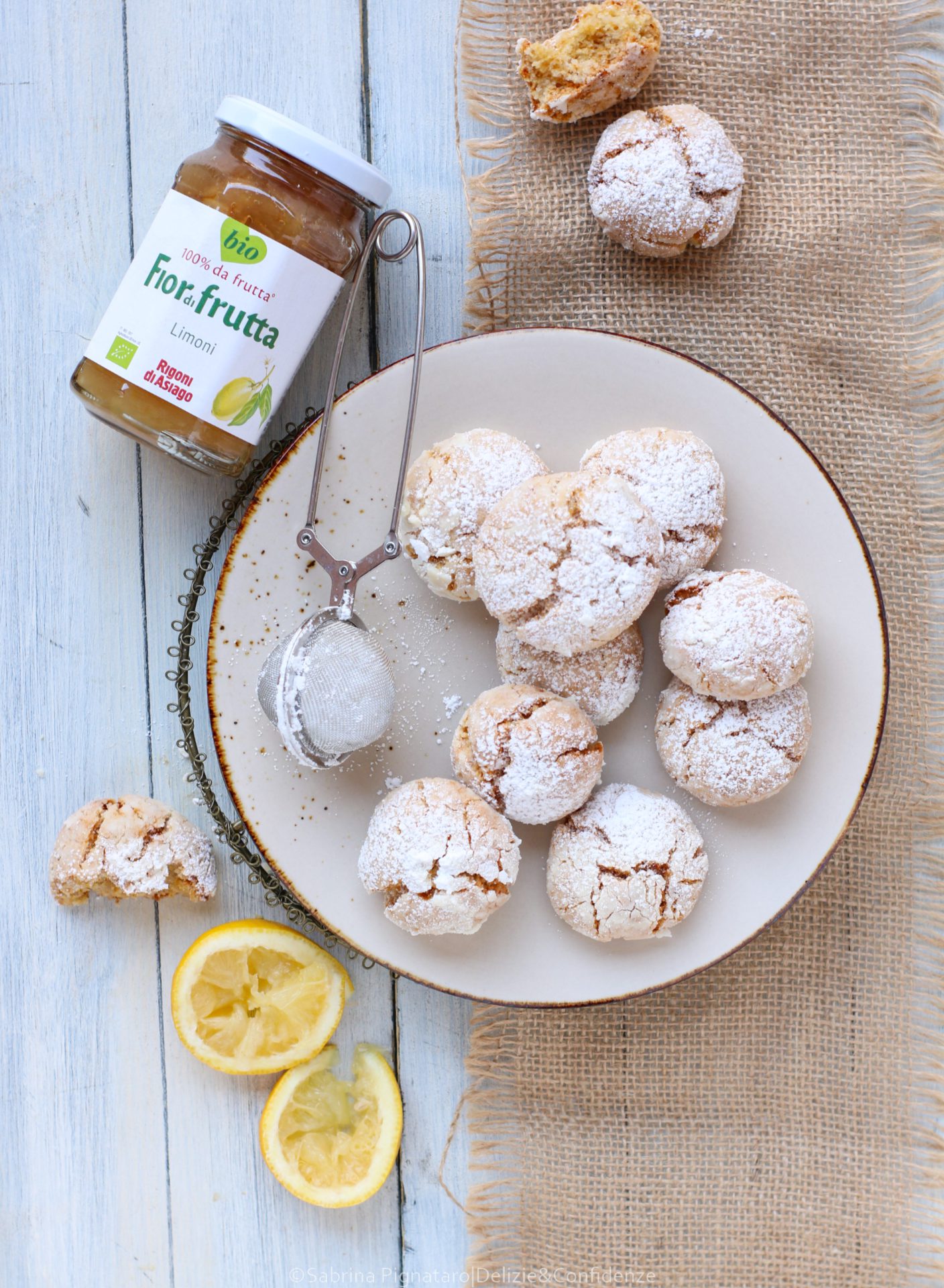 I Lemon Crinkles Cookies sono dei biscotti morbidi e golosi preparati con la Fiordifrutta Limoni nell’impasto che ne caratterizza aroma e gusto.