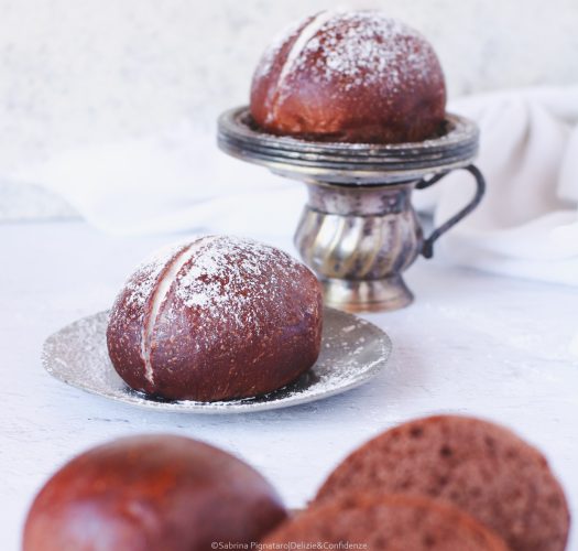 Maritozzi al cacao in formato mini, la rivisitazione della classica ricetta del dolce tradizionale della pasticceria romana e del Lazio in generale. Ricetta senza lattosio nè proteine del latte.