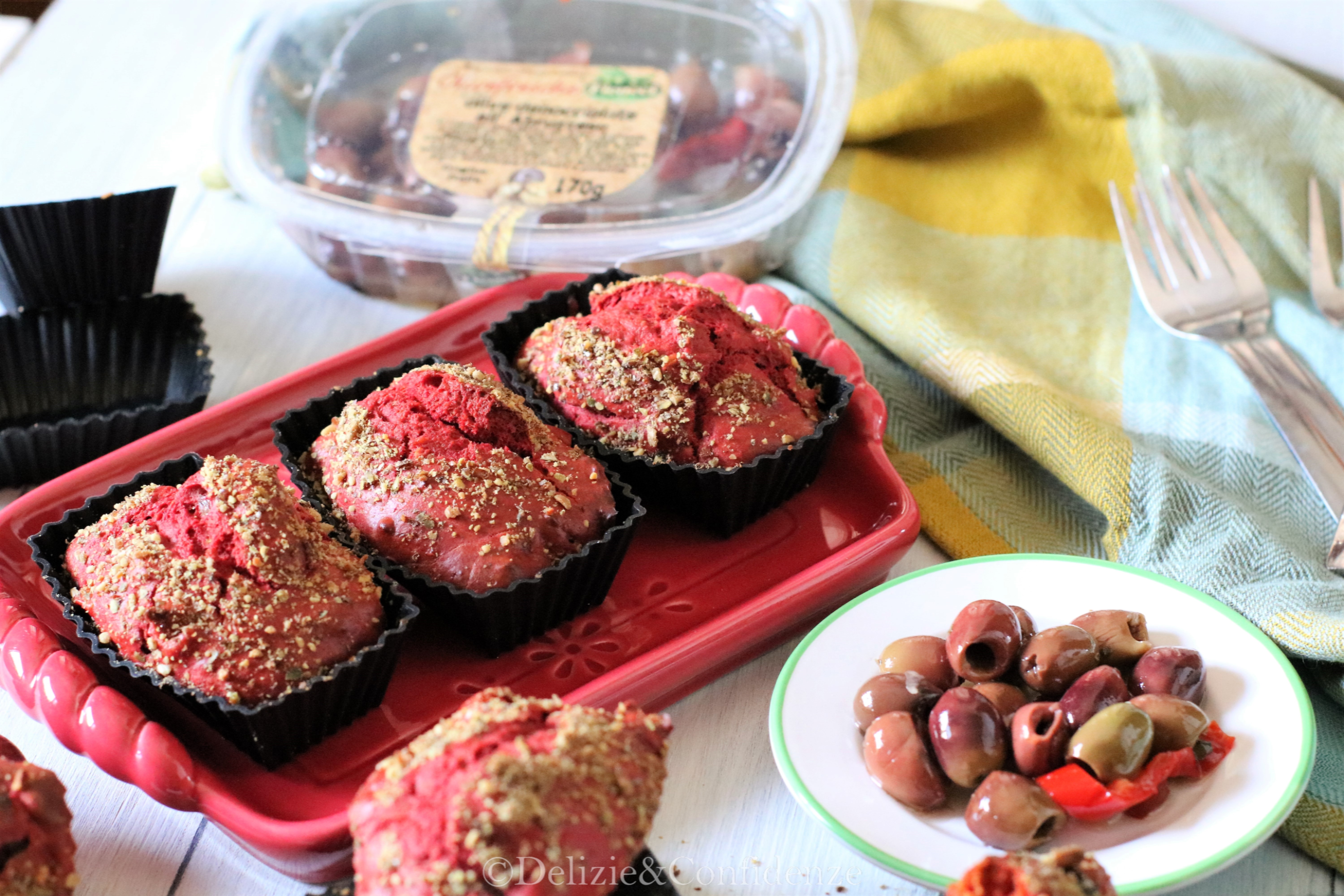 I mini plumcake salati rossi con olive sono un’idea sfiziosa per arricchire il menù di un pranzo o di una cena a buffet, perfetti come antipasto o come aperitivo, ideali anche per la merenda di chi preferisce alternare il salato al dolce. Sono perfetti da portare con se per un pasto fuori casa, che sia l’ufficio o una gita in campagna.