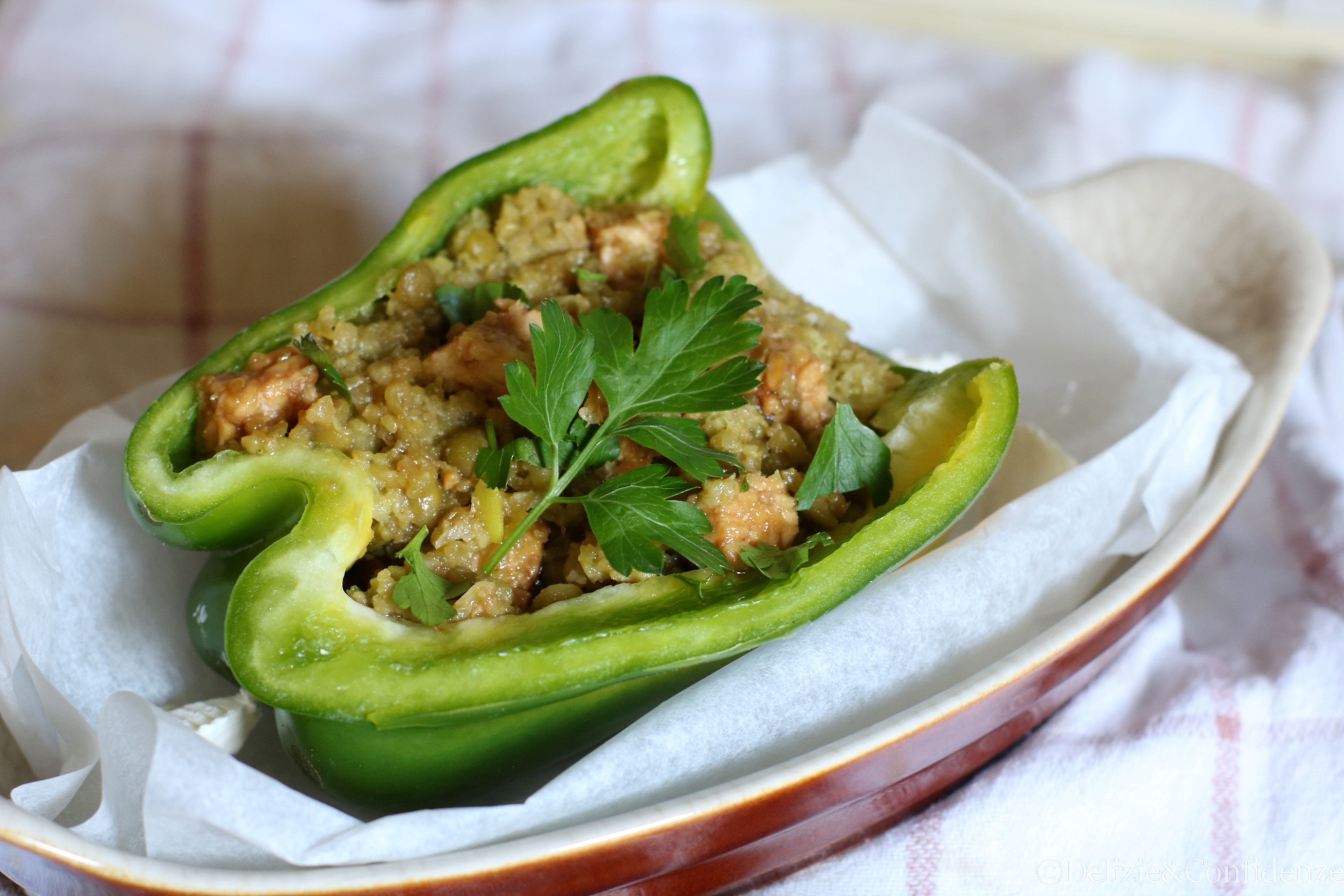 Peperone ripieno con crema di lenticchie e tempeh