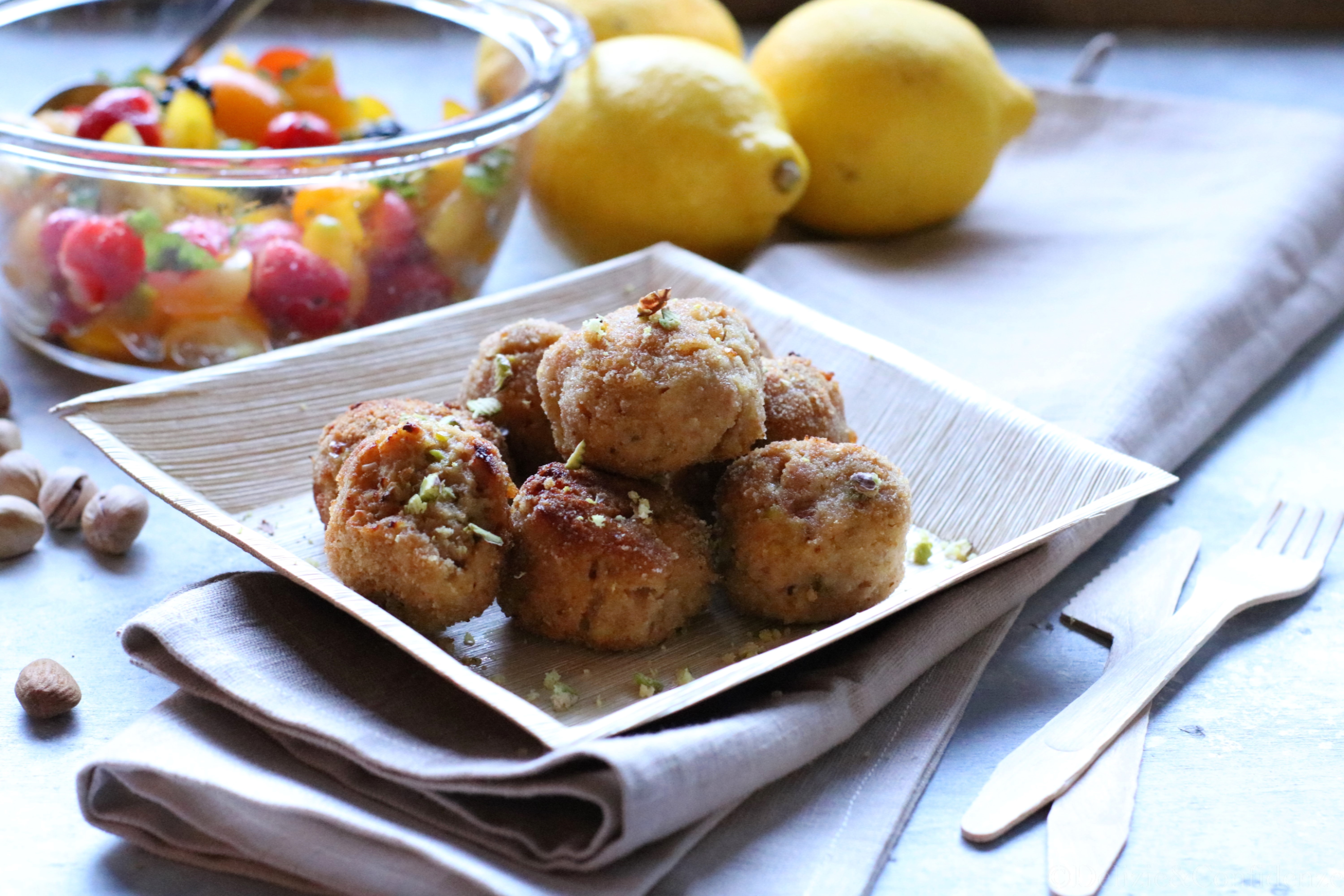 Le polpette di pollo agli agrumi con pistacchi e mandorle sono un secondo piatto sfizioso e leggero, da servire anche come aperitivo o un finger food