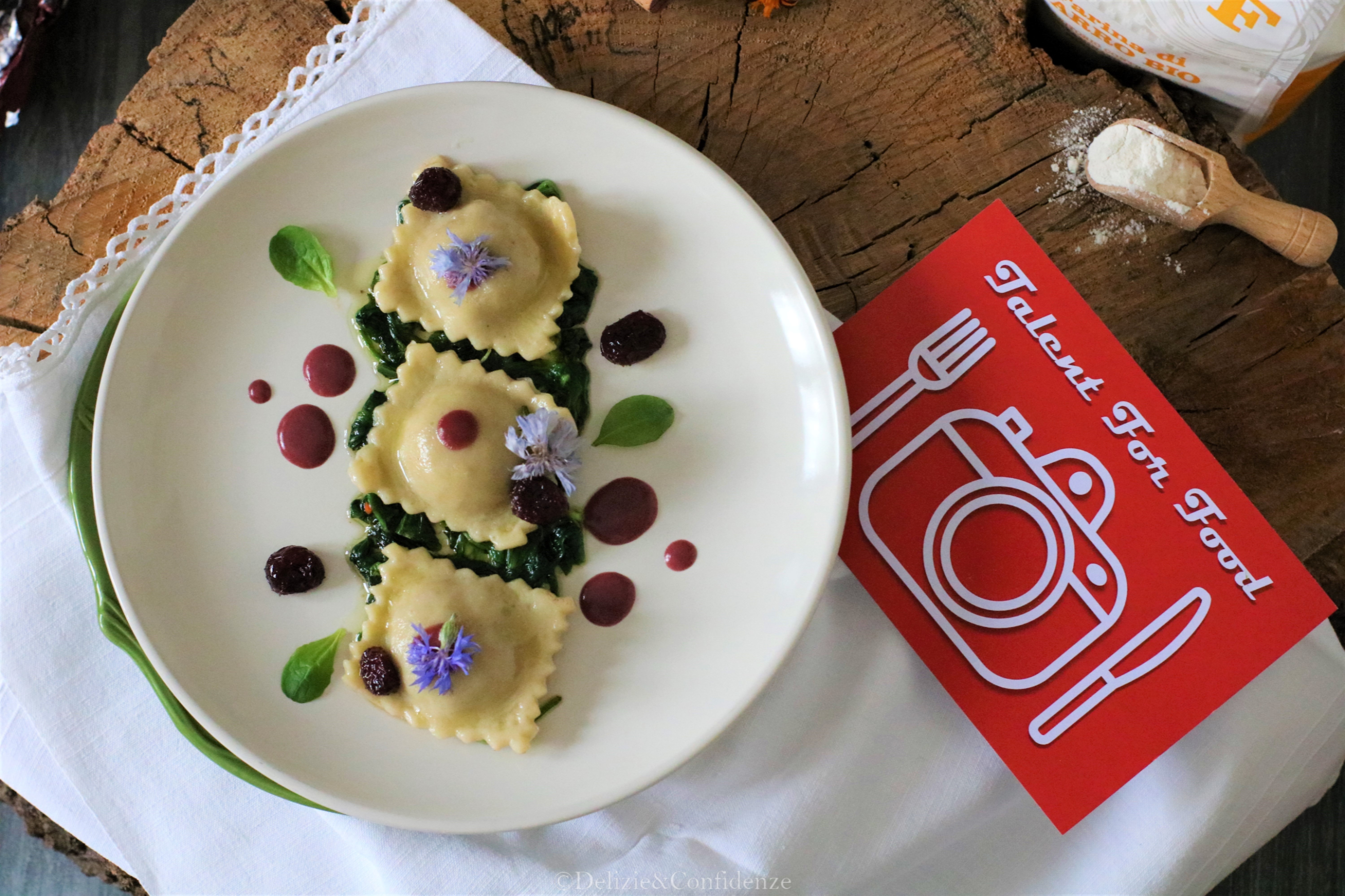 Ravioli di farro con brasato di coniglio e Blu 61 su letto di misticanza e risuzione di Wildbacher – TALENT FOR FOOD 2018
