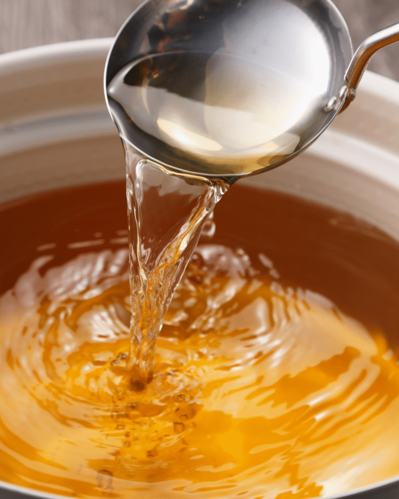 Aggiungere il sale grosso quasi alla fine della cottura per evitare che il brodo venga salato e, quando il brodo è pronto, filtrarlo con un colino.