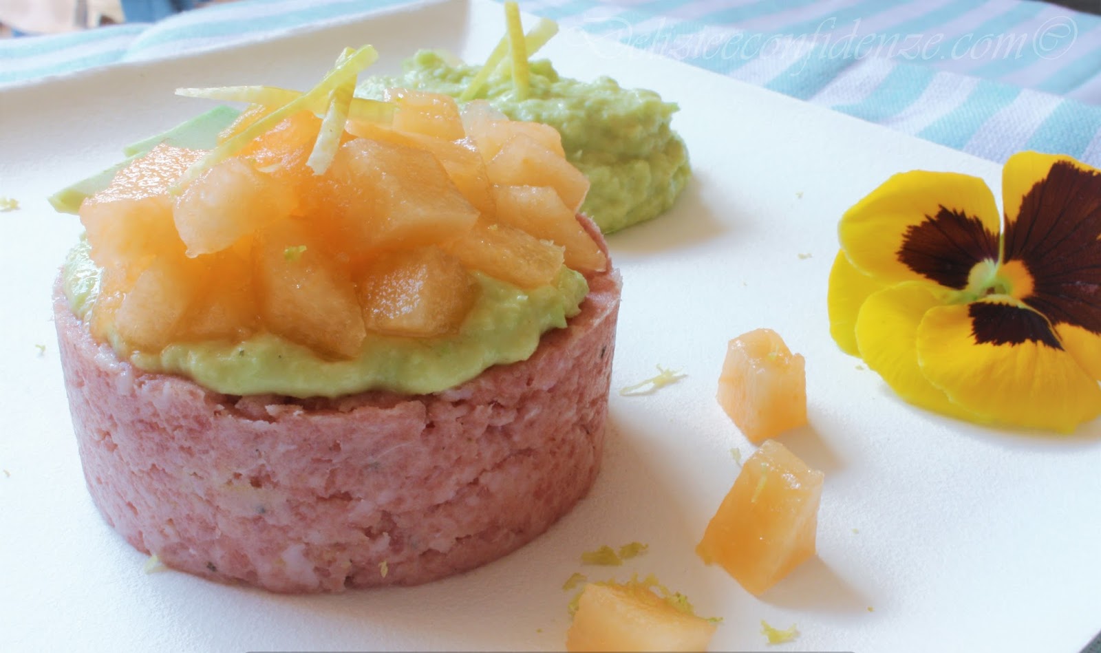 E da questo particolare salume, nasce la mia proposta: una tartare di ciauscolo con melone e crema di avocado, una alternativa alle eccezionali bruschette con ciauscolo spalmato, una veste nuova per valorizzare un prodotto simbolo di un territorio.