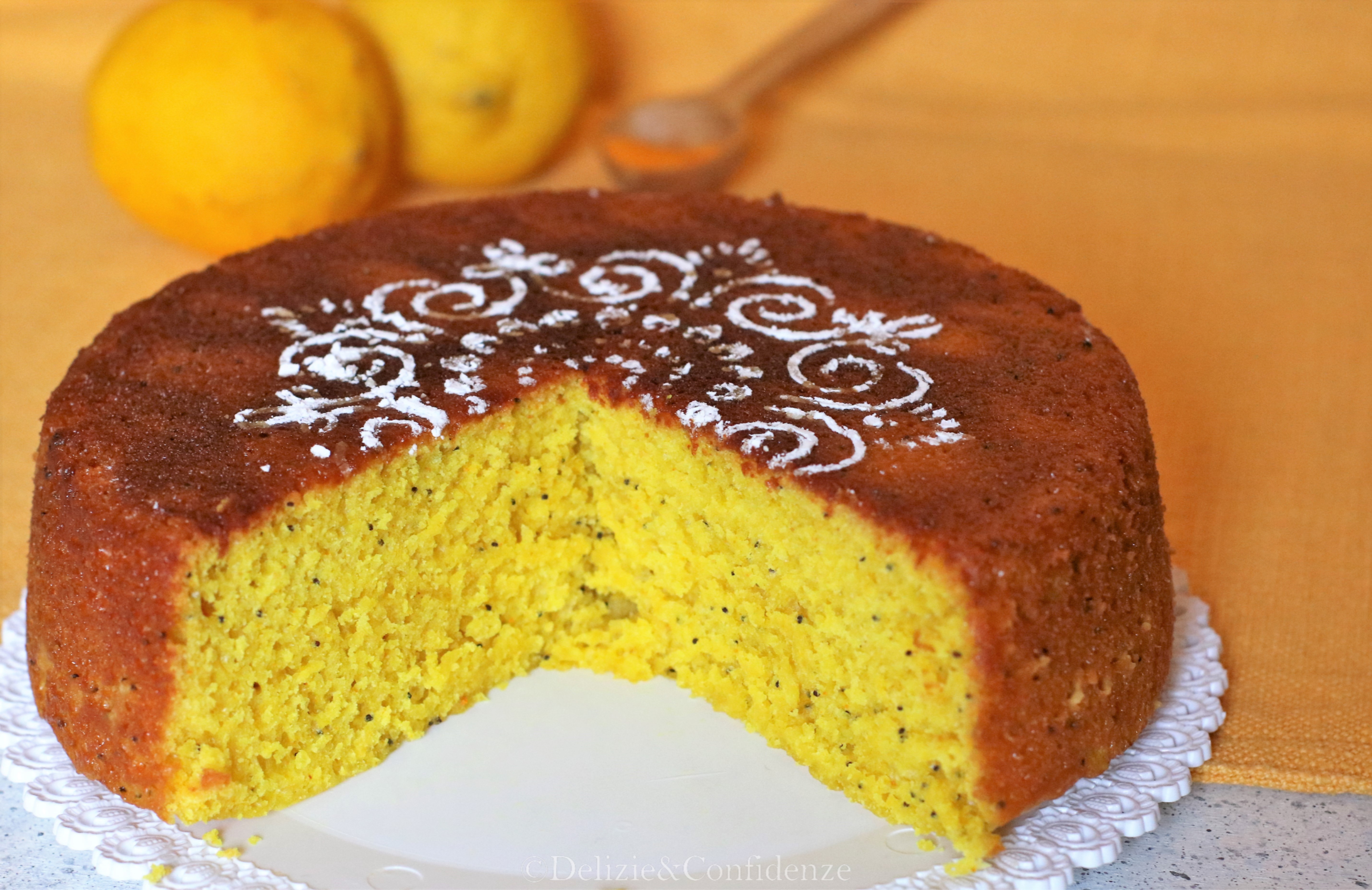 Torta in pentola al sapore di limonata, curcuma e semi di papavero (senza uova, senza burro, senza latte e senza zucchero)