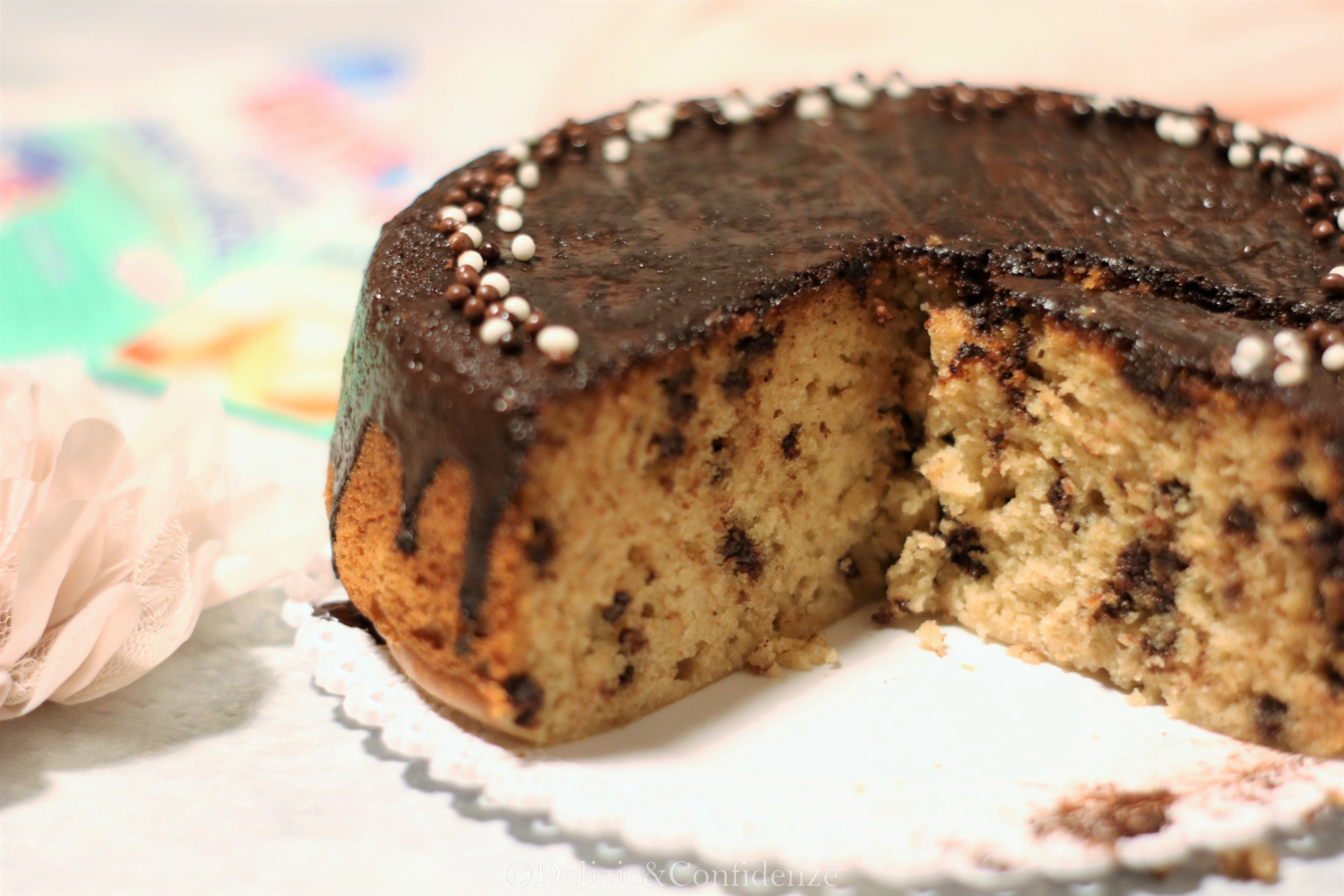 Torta in pentola con yogurt al caffè e cioccolato fondente (senza latte, senza burro, senza zucchero)