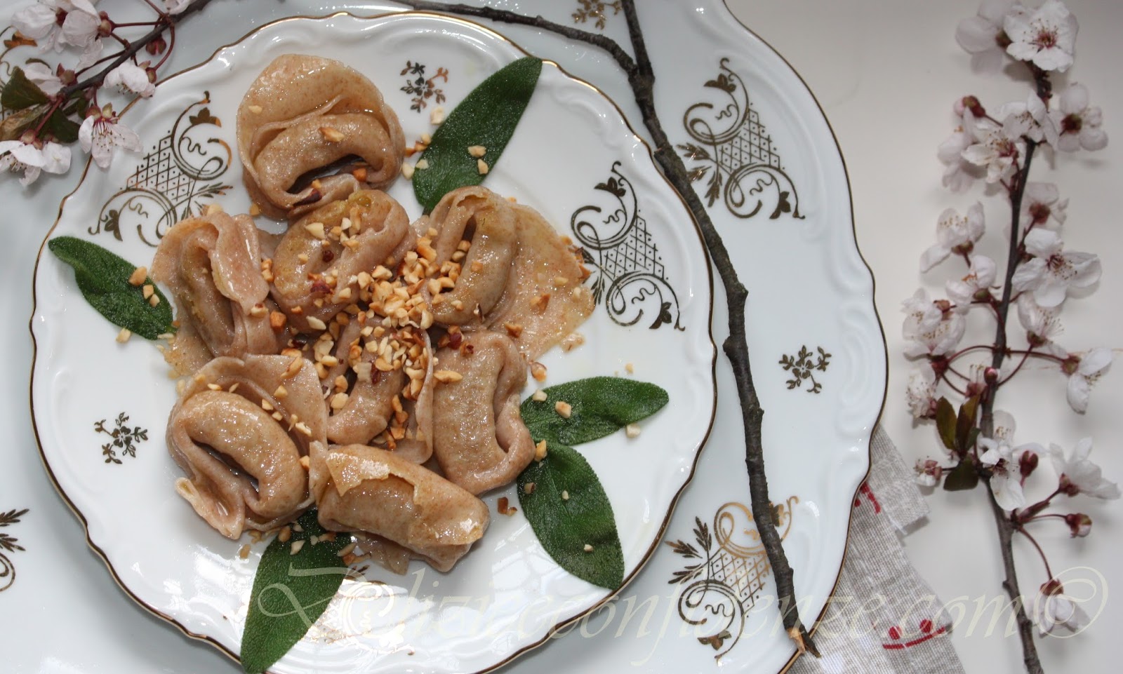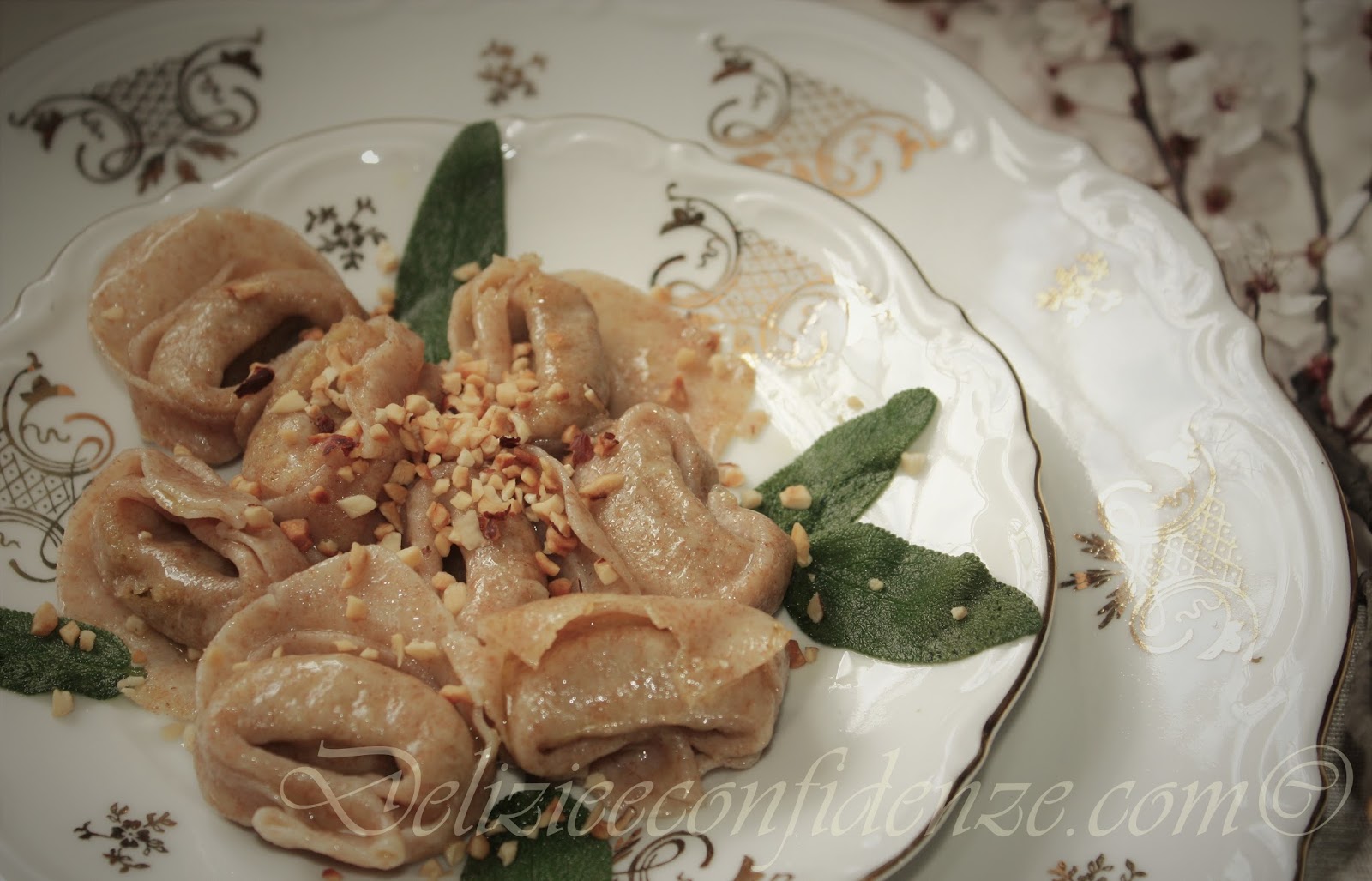 . Se non piace il contrasto tra la morbidezza del ripieno e la croccantezza della granella di nocciole, si può sostituire quest’ultima e decorare il piatto semplicemente con le foglie di salvia, o con qualche oliva nera denocciolata tagliata a rondelle sottili.
