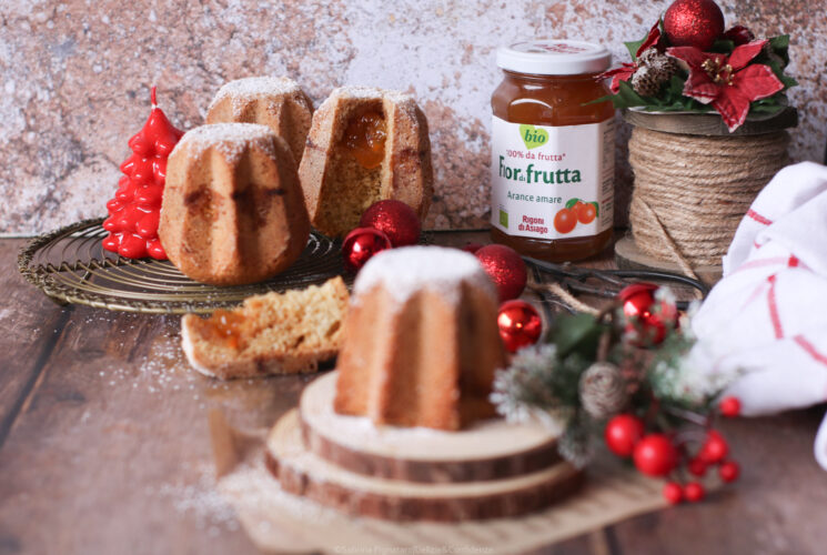 Soffici e profumati dolcetti speziati, dalla forma di piccoli pandori, con un cuore di Fiordifrutta, perfetti per le feste. Senza burro.