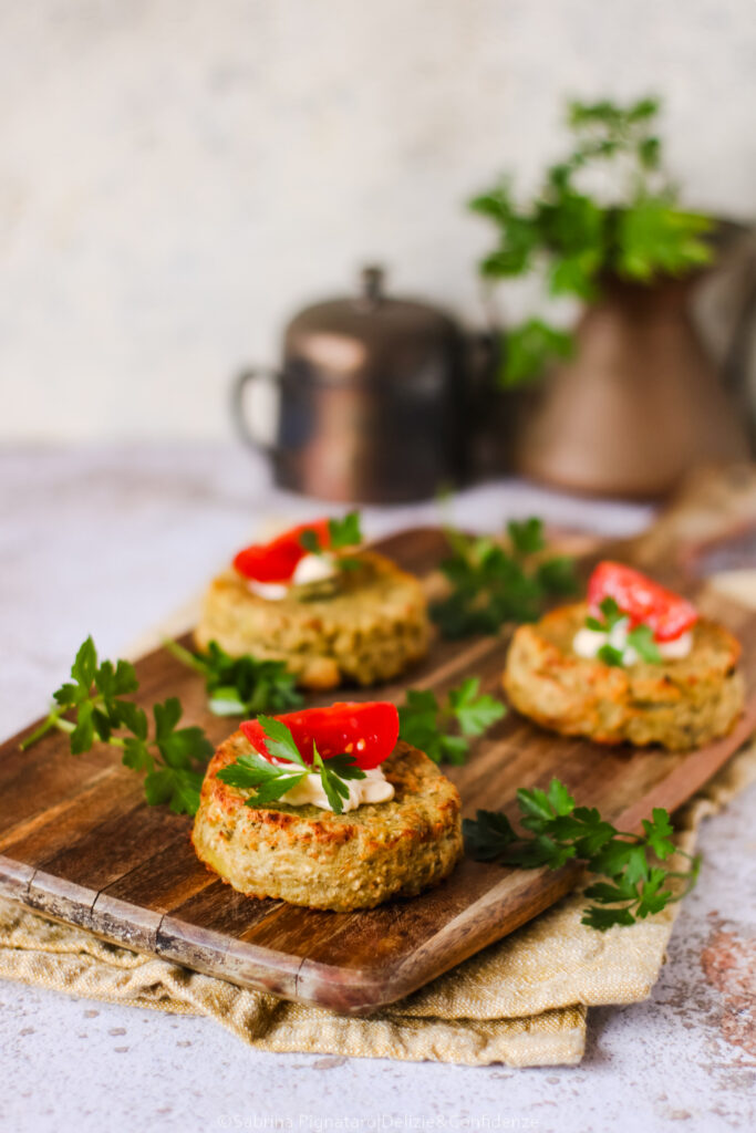 Con pochi accorgimenti è possibile arricchire ulteriormente il sapore dei tortini e renderli ancora più invitanti anche dal punto di vista visivo. Per una presentazione più curata e appetitosa, invece, i tortini possono essere serviti con un piccolo ciuffo di maionese, sia nella versione classica che in quella vegetale, accompagnato da qualche pomodorino tagliato a spicchi, che aggiunge freschezza e un tocco di colore al piatto.