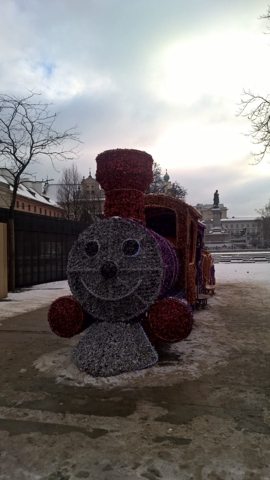 Ed eccoci qui, in una piazza innevata, davanti tanti palazzi alti e imponenti, grattacieli che dominano il panorama della città …..
